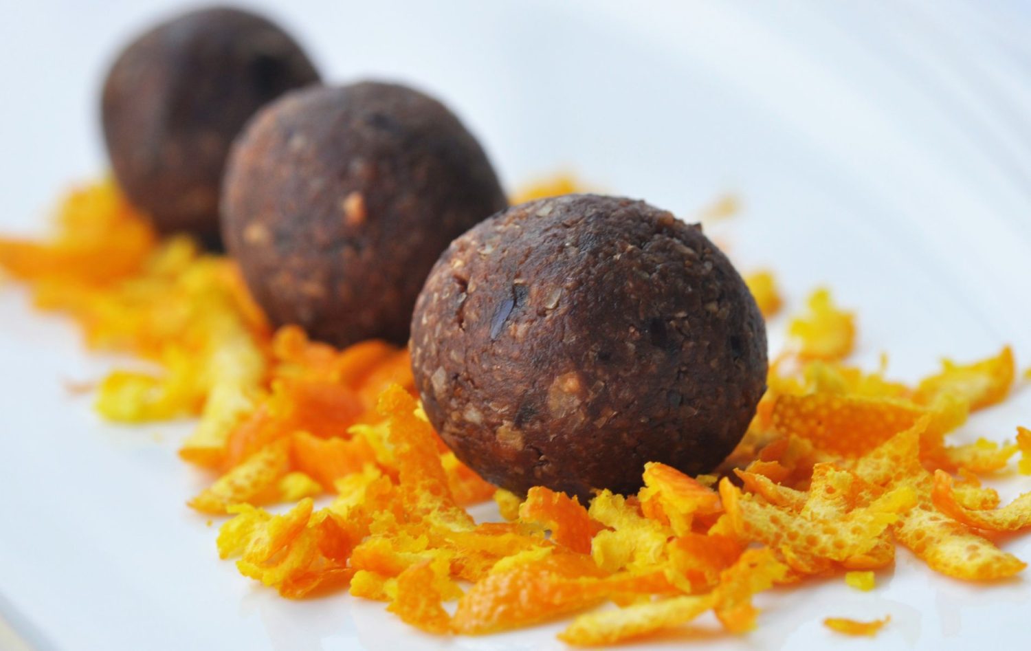 200 g de chocolate negro, 80 g de crema de leche, ralladura de 1 naranja, 1 cucharadita de jengibre fresco rallado, azúcar glass para decorar.
