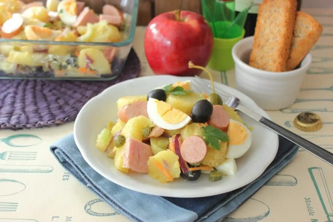 Alfonso López publicó en “Recetas de rechupete” una apetitosa ensalada de verano que nos sirve de inspiración en esta oportunidad. Aunque la receta original se ideó para 4 personas puedes guardarla y tomarla en varias veces si no tienes compañía o adecuar las cantidades si sois más. Ingredientes: 2 kg de patatas nuevas de tamaño mediano, 1 cebolla grande, 1 pimiento rojo, 1 pimiento verde, 2 tomates maduros, pero no muy blandos, 150 g de guisantes frescos o en conserva, 1 bote de bonito del norte, ventresca o migas de atún (200 gr aprox escurrido), sal y pimienta negra recién molida (al gusto), 4 huevos L.