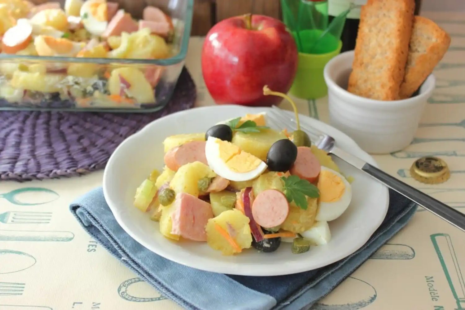 Alfonso López publicó en “Recetas de rechupete” una apetitosa ensalada de verano que nos sirve de inspiración en esta oportunidad. Aunque la receta original se ideó para 4 personas puedes guardarla y tomarla en varias veces si no tienes compañía o adecuar las cantidades si sois más. Ingredientes: 2 kg de patatas nuevas de tamaño mediano, 1 cebolla grande, 1 pimiento rojo, 1 pimiento verde, 2 tomates maduros, pero no muy blandos, 150 g de guisantes frescos o en conserva, 1 bote de bonito del norte, ventresca o migas de atún (200 gr aprox escurrido), sal y pimienta negra recién molida (al gusto), 4 huevos L.