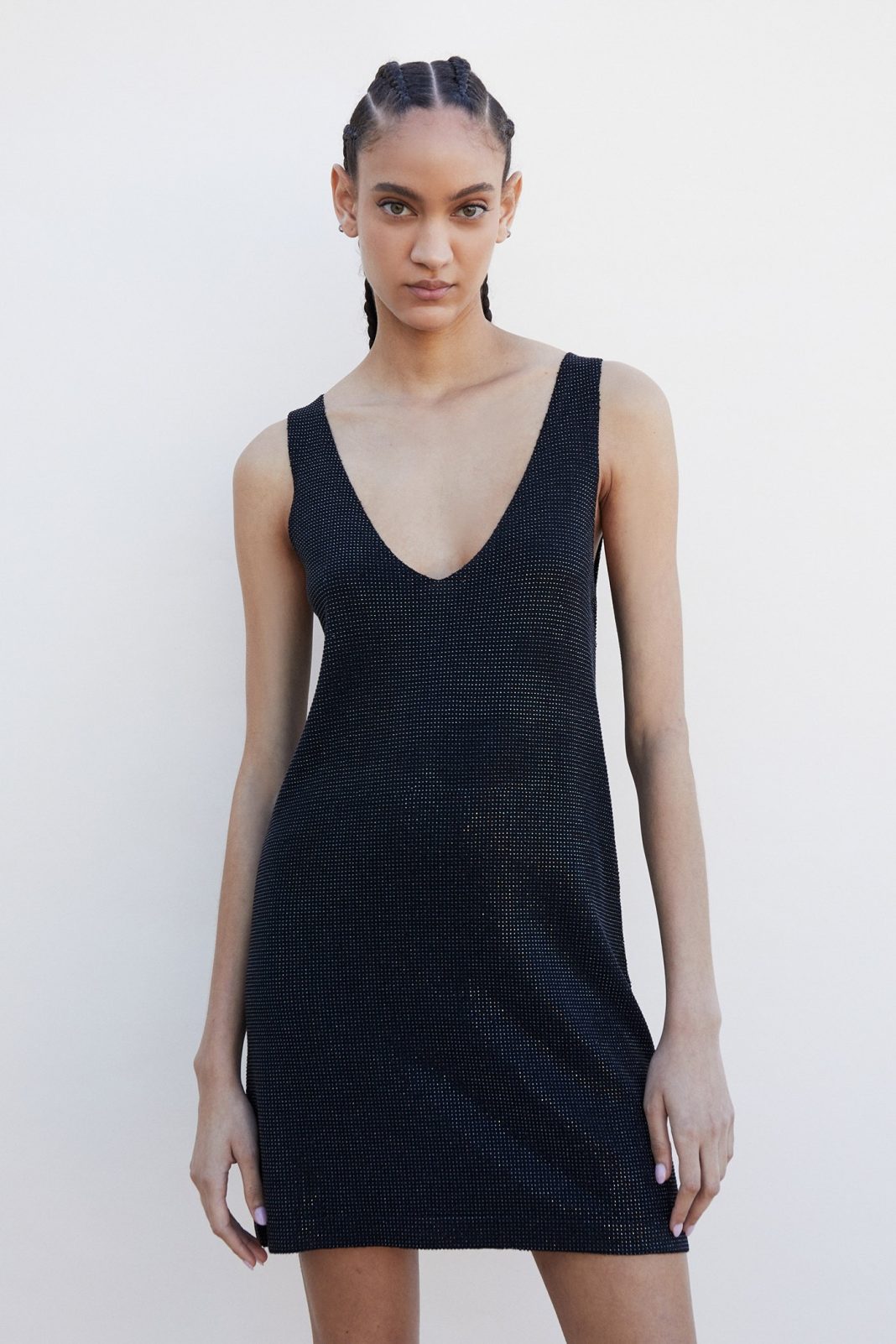 Aún si te pasas todo el día en playa o trabajando, los fines de semana por la noche son sagrados y este vestido es perfecto para que a los demás les dé torticolis de tanto mirarte. Es súper cómodo y, con los zapatos adecuados, podrás aguantar toda la noche sin cansarte. Permite que estés elegante de principio a fin. Su corte en pico y brillantes lo convierten en una pieza sofisticada y de noche que jamás pasa de moda. El negro es el color más universal del mundo, así que también podrías incluirlo en tu fondo de armario. Su precio es 29,99 euros.