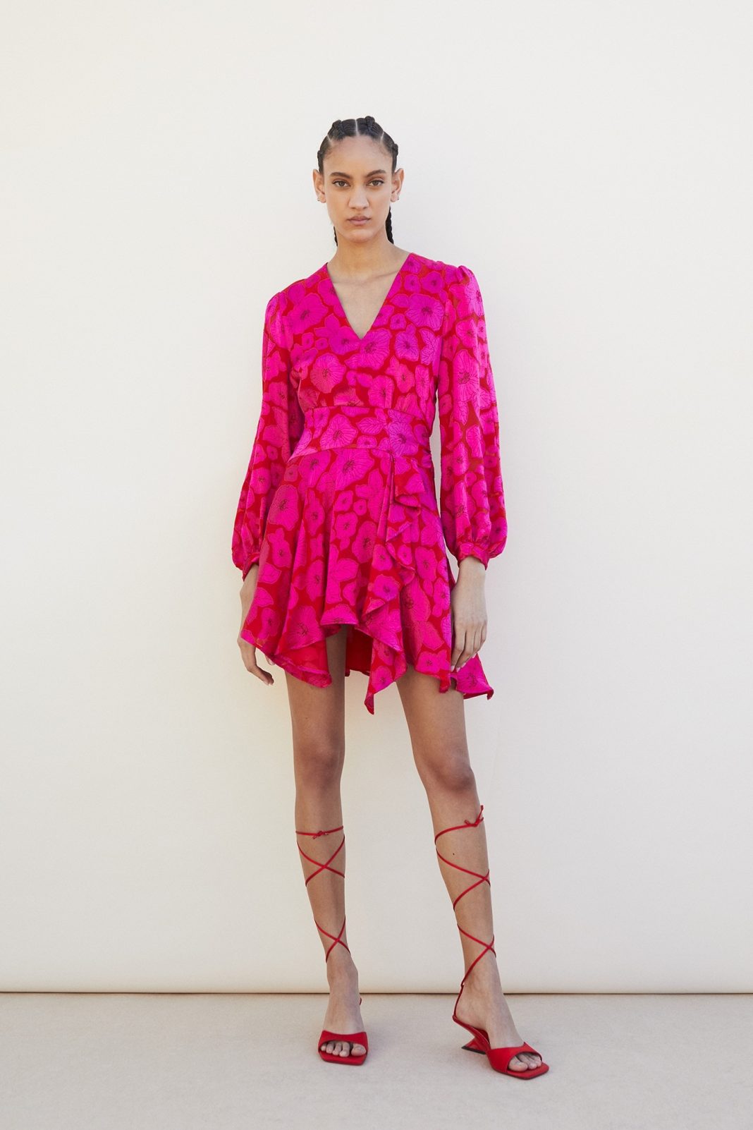Eso de que rojo y rosa no pega ya está pasadísimo desde hace varias temporadas. Lo llamativo está arrasando en todos los países y Sfera no se podía quedar atrás. Este vestido estampado con manga larga abullonada, cuello en pico y un detalle de volantes delantero nos está dejando sin palabras. Su cierre trasero de cremallera oculta termina de convencernos de que, para resaltar, hay que llevar algo diferente. Con actitud y mucha clase, llevarás este vestido como si fueras la mismísima Karol G. Su precio es 49,99 euros.