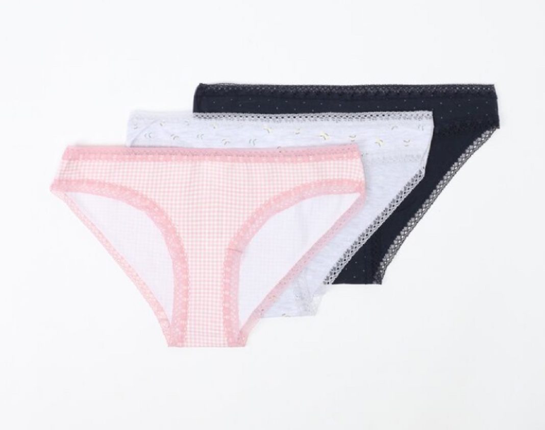 Todos los modelos de Lefties no están dejando con la boca abierta. Pero ¿qué pasa si eres más clásica? Los encajes feroces te gustan para ocasiones especiales, pero lo que quieres son unas braguitas que cumplan su función y sean cómodas. Este pack de 3 braguitas es comodísimo, tiene un poco de encaje, pero denota un estilo más ‘sweet’. Fueron confeccionado en un tejido suave con forro interior en distintos estampados. Vale 5,99 euros. ¡Tiradísimo!