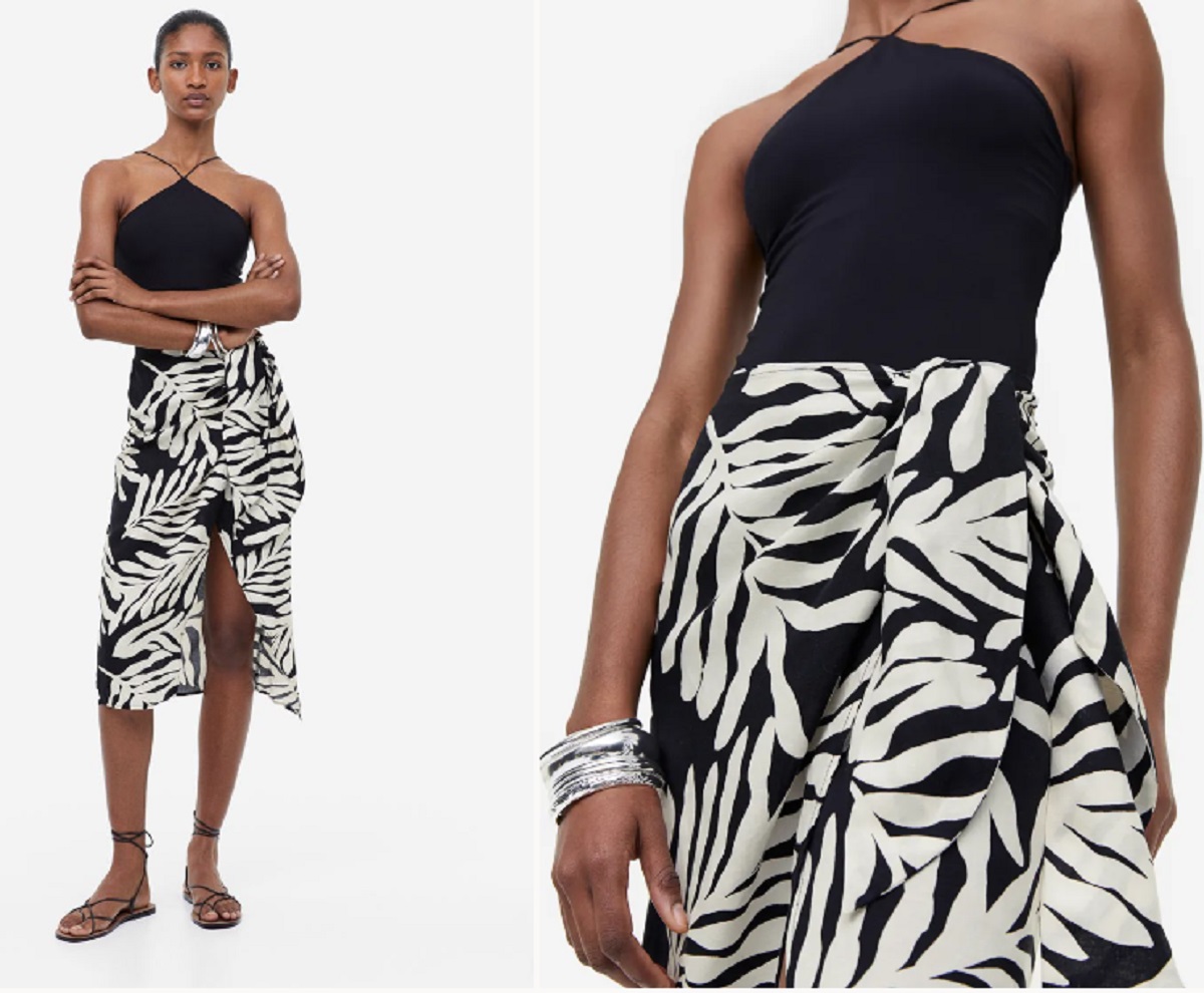 Las faldas predilectas para esta temporada son las de largo midi. Los estampados están pisando fuerte y, en este aspecto, la marca ha preferido unirse a esta tendencia con los estampados salvajes más dulces. Esta falda entallada en lino y viscosa es la típica que podríamos ver en una ‘influencer’ para dar un paseo por cualquier paseo marítimo en los próximos meses. Cuenta con una cremallera oculta y un cierre de corchete detrás. El frente es forrado con un botón de presión oculto y tiras anchas en un lateral. No está forrado. Cómoda, bonita y ‘chic’. ¿Qué más podríamos pedir? Vale 29,99 euros.