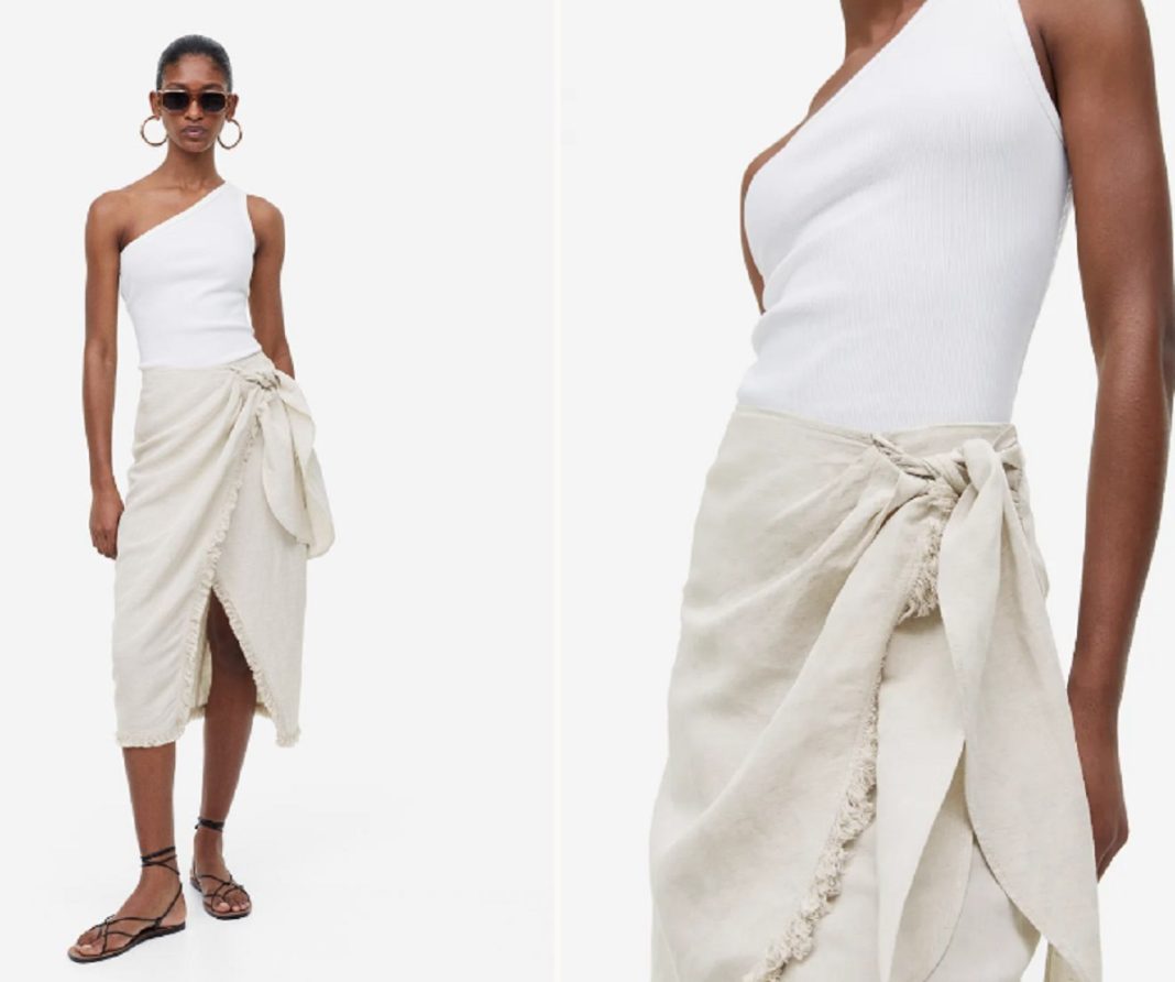 3H&M: Falda cruzada en mezcla de lino Beige claro