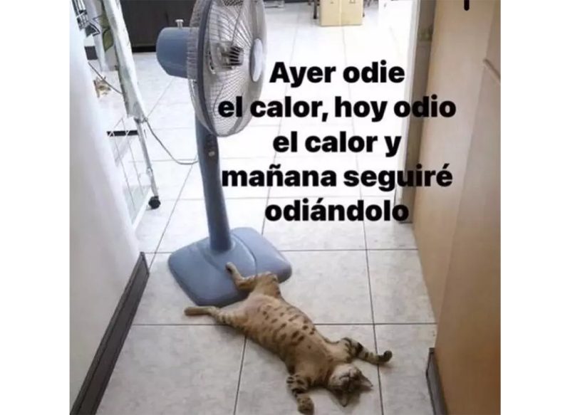 Hay muchas personas que se encuentran en contra del calor y lo dejan claro a través de diferentes memes como este, en el que nos encontramos con un gato que está boca arriba y que representa a todas aquellas personas que consideran insoportable tener que dormir con las temperaturas muy elevadas.
