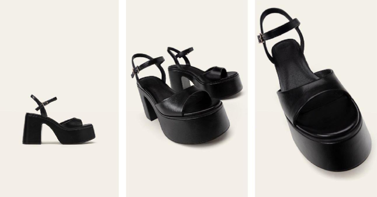 ¿Quién no caería rendida ante estas sandalias de tacón de Stradivarius? Su plataforma las convierte en lo más cómodo del mundo y su detalle de bandas en la parte frontal lo más práctico. Aunque no lo parezca tiene 10,8 cm de tacón que nos brindarán la altura perfecta para sentirnos unas supermodelos allí donde vayamos. Además, eso de que “para presumir hay que sufrir” lo dejamos guardado cuentan con una plantilla técnica flexible de espuma compuesta de látex, diseñada para ofrecer el máximo ‘confort’. Están rebajadas un 44% y su precio final queda en 19,99 euros.