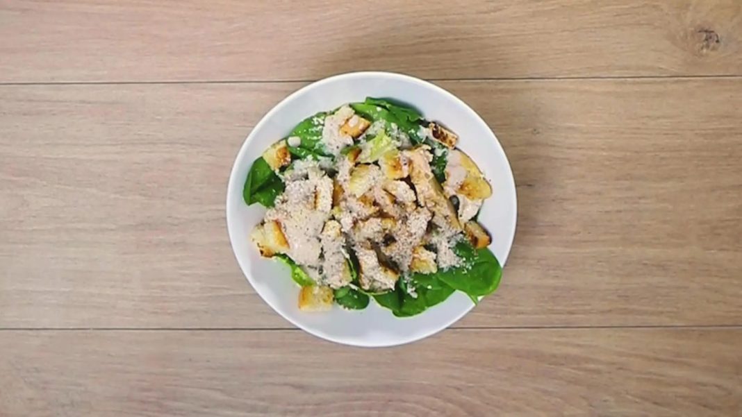 Salpimentamos y cortamos las pechugas de pollo en cubos de tamaño de bocado. Las metemos en una sartén con un poco de aceite a fuego fuerte. Cocinamos por unos minutos. Mientras se hace el pollo, cogemos una ensaladera y vamos poniendo unas cucharadas de la salsa para preparar lo que será la ensalada César. Sobre ella, ponemos la lechuga cortada, los tomates cherrys y la rúcula. Estos dos últimos ingredientes no suelen incluirse en la ensalada, pero el autor asegura que quedan de lujo. Aquí tenemos el secreto para crear la mejor ensalada de mundo.