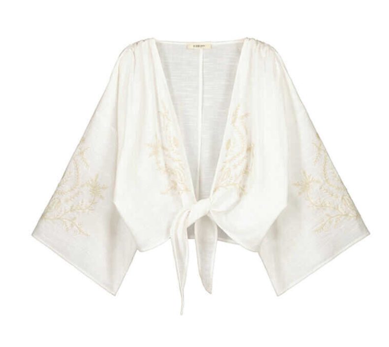 Pero Sara Carbonero no ha querido dejarle todo el protagonismo a este vestido capaz ya de por sí de captar todas las miradas. Para completar un look que gusta a todas, la influencer ha elegido una blusa blanca, que se ha convertido en el color tendencia de esta temporada. Esta prenda llama a su vez la atención gracias a sus bordados, que lucen del mismo tono que el vestido. Se trata de una pieza elaborada con algodón que se anuda a la cintura y que ahora se puede conseguir en la tienda por 29,99 euros en lugar de 49,99.