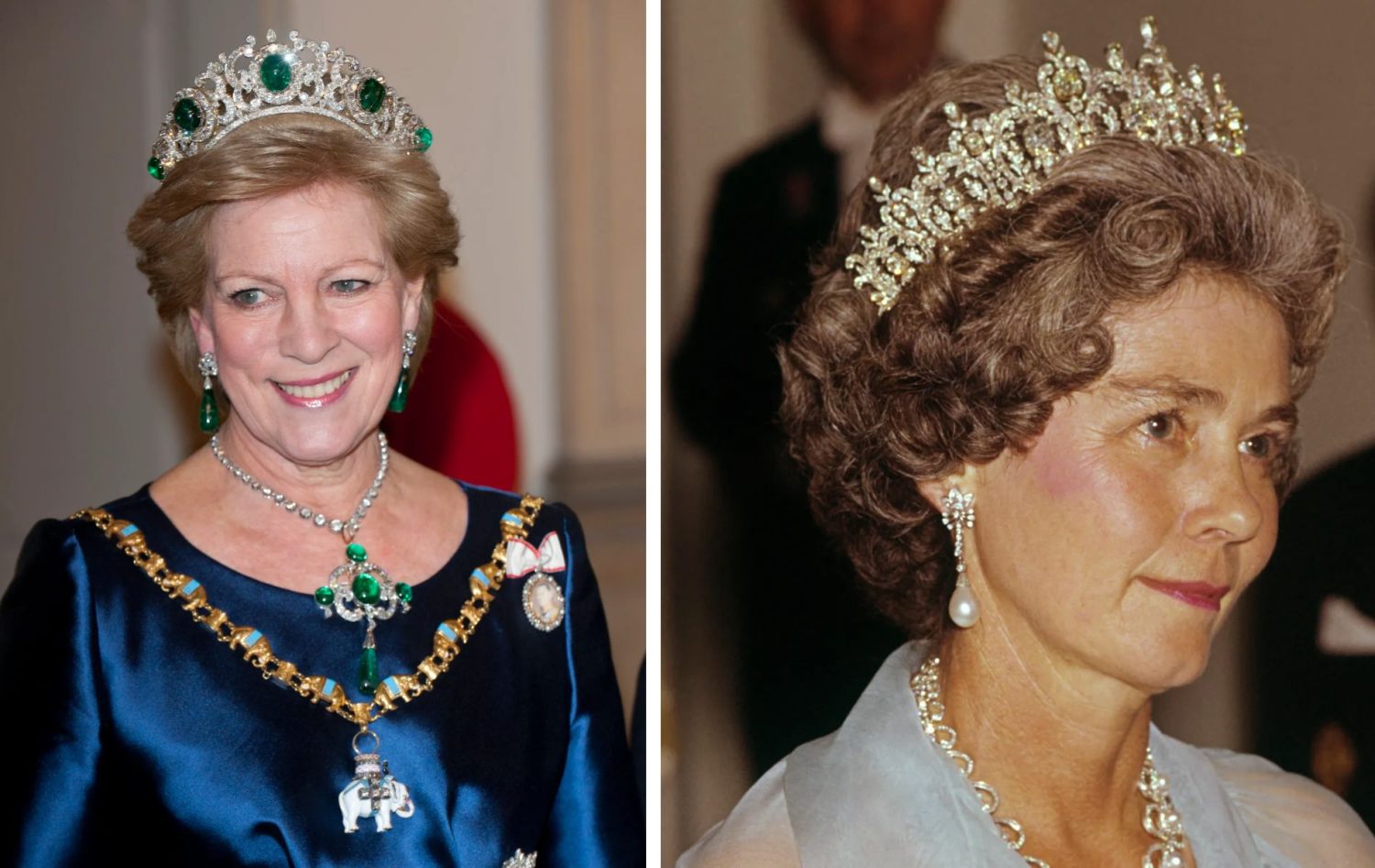 La reina Federica dejó como legado preciadas y exclusivas joyas que han sido lucidas por miembros de la familia real. Entre ellas se encuentra la diadema de esmeraldas, conocida como la kedive de Egipto, así como una deslumbrante tiara de diamantes y rubíes con elegantes ramas de olivo, entre otras piezas. Sin embargo, la joya más emblemática de la reina Sofía es la tiara prusiana, un diseño de estilo imperio en platino y diamantes con un impresionante diamante central colgante en forma de lágrima.