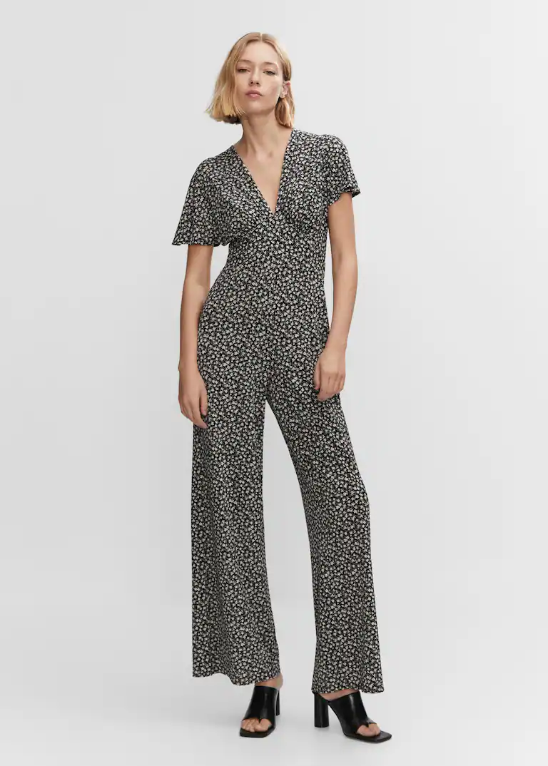 Los monos largos o enterizos son una prenda elegante con mucho estilo, así que siempre son una apuesta ganadora. En Mango puedes llevarte este modelo de tejido fluido y pantalón largo de corte recto, muy favorecedor. El cuello es enferma de pico, y la manga corta con corte en diagonal. Cierra con un botón al cuello y tiene un bonito estampado en negro. Es una de esas prendas pensadas para ir cómoda en el día a día pero sin renunciar a un look impecable y con un toque sofisticado. Ahora está muy rebajado y puedes llevártelo por solo 12,99 euros.