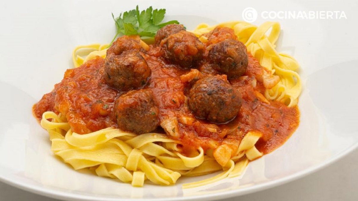Karlos Arguiñano enseñó su receta en “Cocina abierta”. En lugar de espaguetis con albóndigas los llamó tallarines con albóndigas de ternera y queso bañados en salsa casera. Básicamente se podría decir que es el mismo plato, pero el término cambia porque la pasta que utiliza es diferente. Su salsa está hecha con sofrito de ajo y cebolleta, panceta, vino blanco, salsa de tomate y especias. Es una receta que está pensada para 4 personas y necesita los siguientes ingredientes.