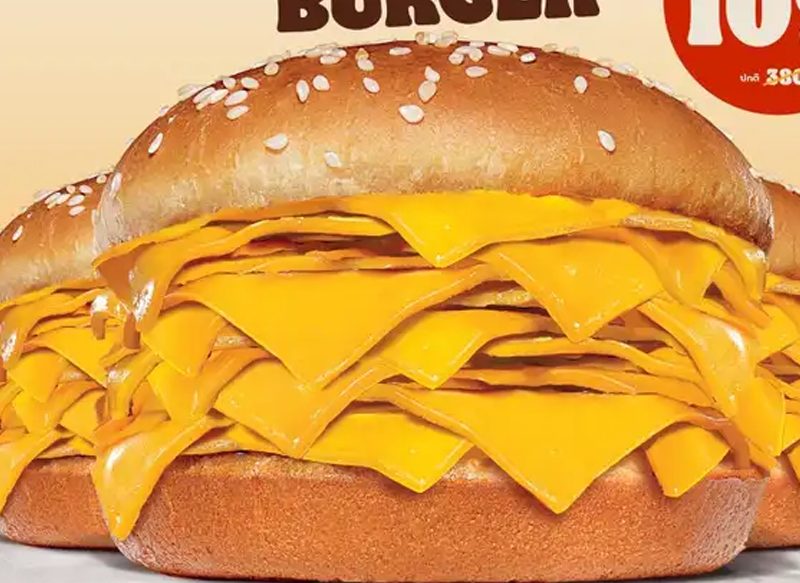 Sin embargo, en pocas ocasiones hemos visto opciones tan surrealistas como la que Burger King acaba de lanzar en Tailandia, una hamburguesa llamada «The Real Cheeseburger» que cuenta con nada más y nada menos que 20 lonchas de queso cheddar, las cuáles se encuentran entre dos panes. Estos son sus dos únicos ingredientes.
