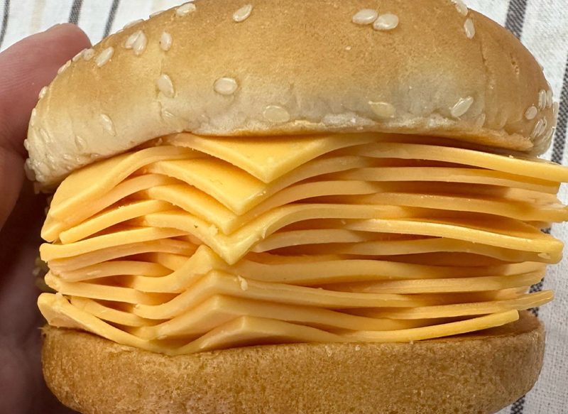 No obstante, vistos sus ingredientes no te resultará complicado replicar la receta, ya que solo tendrás que comprar pan de hamburguesa y 20 lonchas de queso cheddar. A partir de ahí podrás bien imitarla fielmente no añadiendo nada más a tu hamburguesa, o bien, si lo prefieres, agregar algún tipo de ingrediente adicional como el bacon para que no sea sabor tan solo a queso.