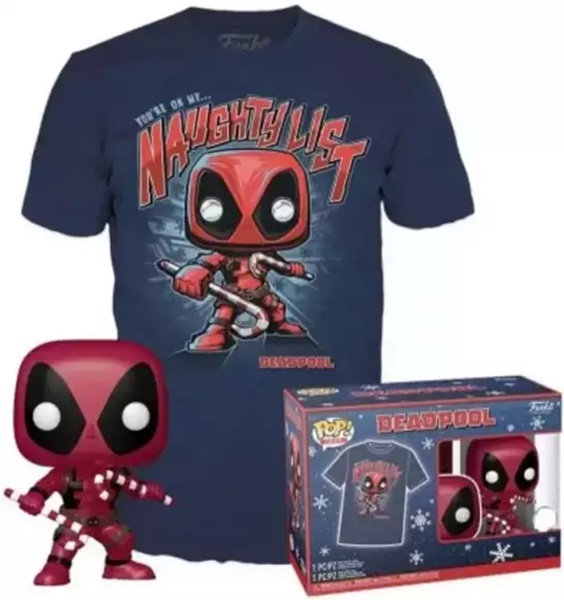 Fantástico precio para este conjunto compuesto por una camiseta exclusiva de Deadpool y por el Funko Pop Tees. Este lote es ideal tanto como regalo y como para coleccionistas. El funko tiene un tamaño de aproximado de 10cm y puedes elegir cualquier talla de camiseta.