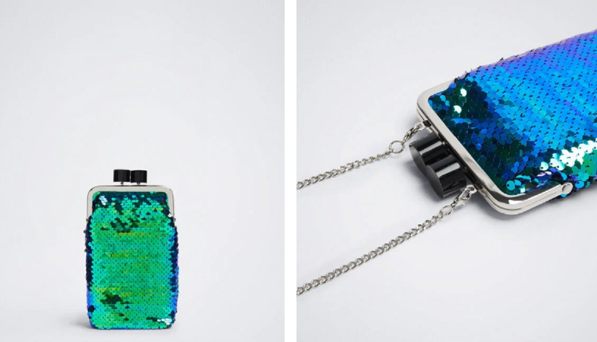 Puede que eso de llevar lo mínimo e indispensable no se aplique solamente a las mañanas o las tardes, sino también a eventos o noches. Si quieres llevar un bolsito para el móvil más arreglado, este diseño con lentejuelas se lleva la palma. Está disponible en dos colores y se ve a kilómetros. Puede ser la guinda del pastel si has elegido un ‘outfit’ rompedor con el que pasar desapercibida no es una opción. Vale 15,99 euros.