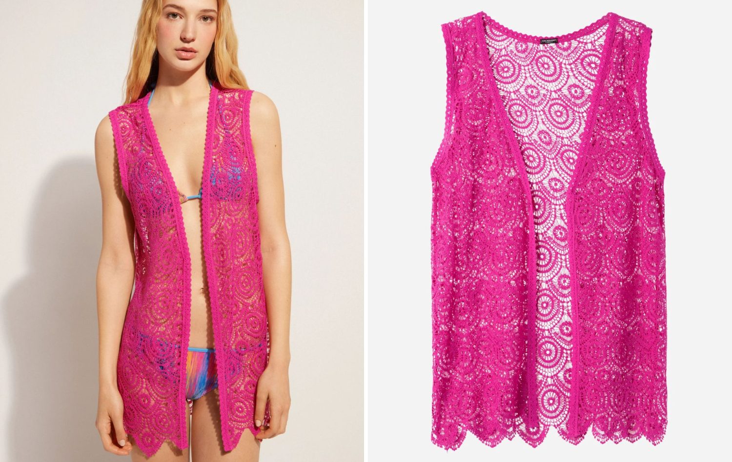 1El encanto geométrico de Calzedonia: Descubre el chaleco de ganchillo rosa fuerte para tu verano con estilo