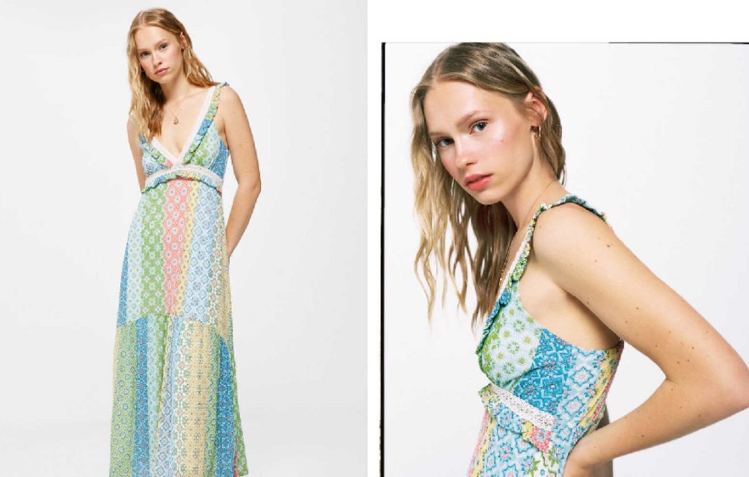 Los vestidos midi están de moda este año y Springfield lo sabe. Es por eso que podemos encontrar varias opciones en su catálogo con este largo, aunque este resalta especialmente. Tiene un poco de encaje, volantes y estampado. El típico todo en uno. Sin embargo, en ningún mmomento da la sensación de que estemos frente a un modelo recargado ni mucho menos, más bien todo lo contrario. Las chicas boho caen rendidas ante esta exquisitez. Su precio es 35,99 euros.