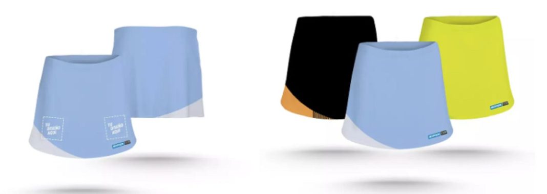 ¿Sabías que Decathlon te da la posibilidad de diseñar tu propia falda de tenis? Como te hemos indicado antes, la firma tiene ropa para todo tipo de deportes y si quieres crear la tuya de forma personalizada, solo tienes que ir a equipacion.decathlon.es. Si después de visitar la web sigues teniendo dudas puedes comunicarte a equipaciones@decathlon.com o al 91 453 37 72. El precio depende del número de unidades que te lleves.
