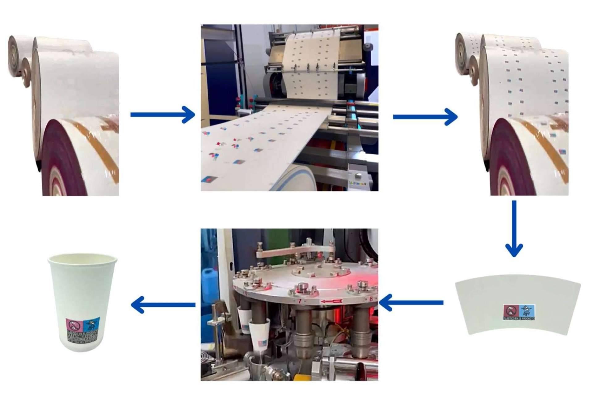El proceso de fabricación de los vasos de cartón comienza con la selección de los materiales. En primer lugar, se utiliza una bobina de papel. Esta puede ser laminada, es decir, que ha sido sometida a un proceso de recubrimiento con polietileno que la hace resistente a la humedad y evita que se filtre la bebida, garantizando así su alta calidad o puede ser de papel 100 % bio. Se trata de un nuevo material innovador que garantiza también su impermeabilidad sin necesidad de este tratamiento.