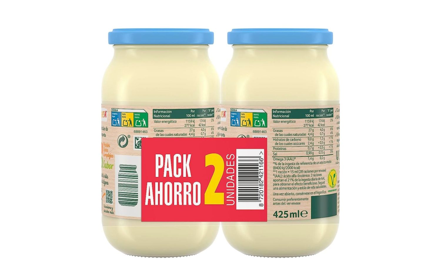 En la segunda posición, encontramos la Ligeresa Salsa en Tarro Original Pack Ahorro, una opción ideal también para ensaladillas. Este pack incluye dos tarros de 425 ml cada uno de Ligeresa Original, una salsa que destaca por sus múltiples beneficios. Una de las ventajas de la Ligeresa Original es que no contiene conservantes ni lactosa, lo que la hace apta para personas con ciertas restricciones dietéticas. Además, es una fuente natural de Omega 3, un ácido graso esencial para una dieta equilibrada.