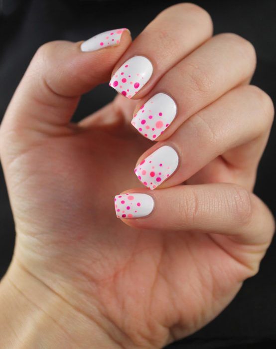 No cabe duda de que Barbie se ha vuelto a convertir en ese icono mundial que nos ha deslumbrado durante décadas. Con el estreno de su película muy próximo, otra manicura que debes probar para sentirte como una auténtica muñeca es esta. Se trata de pintar la base de tus uñas de color blanco y, después, añadir puntos de distintos tamaños en varios tonos de rosa, como el fucsia, el rosa palo o el propio rosa Barbie. Será un resultado muy romántico y femenino.