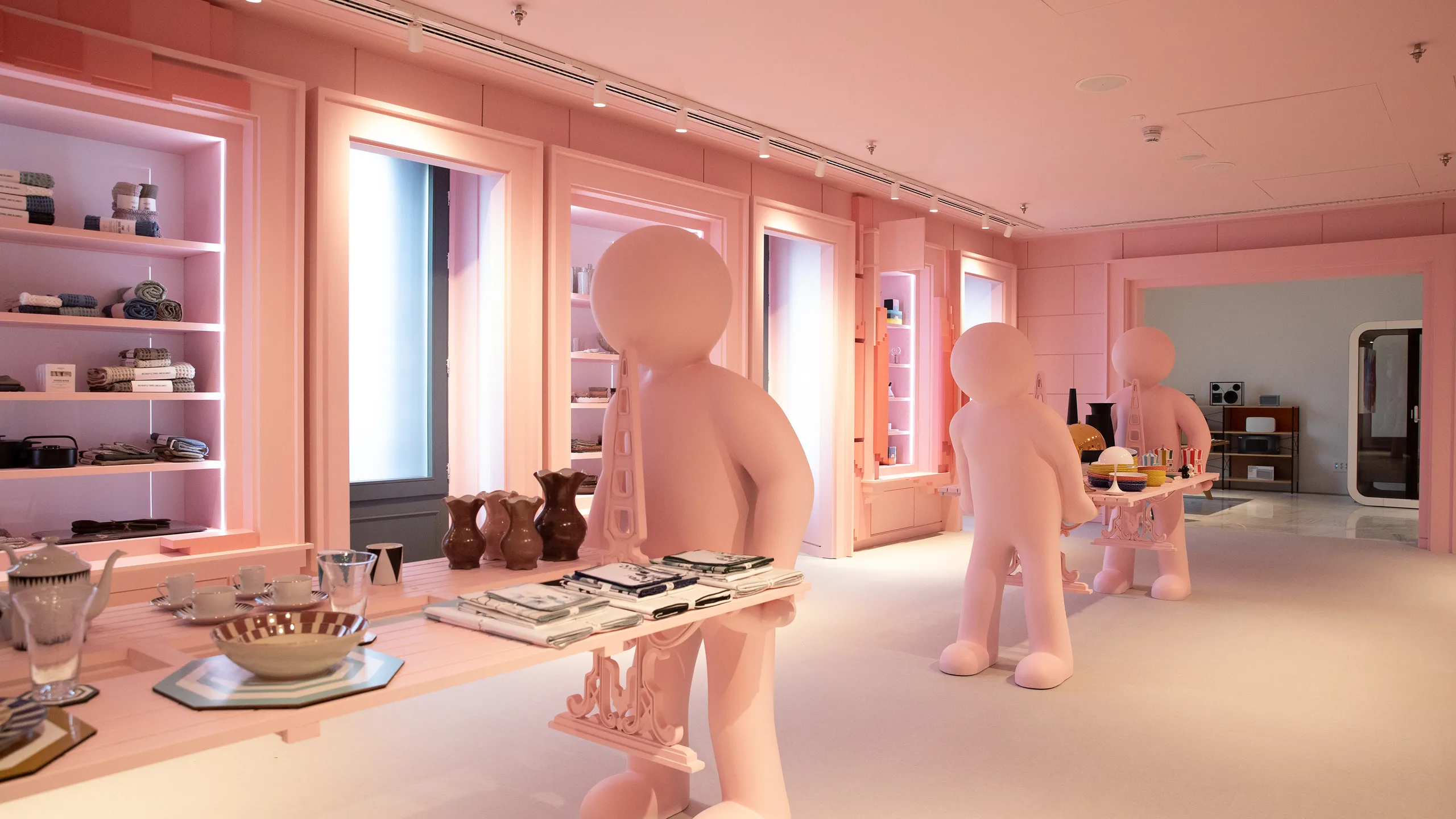 Para encontrar este espacio rosa propio de Barbie, no basta con mirar a simple vista. Debes dirigirte a la sección de hogar, ubicada en una de las ocho plantas de la nueva WOW Concept, una mega tienda que ocupa más de 5,500 metros cuadrados en la Gran Vía. Aquí, se ha creado un nuevo concepto de compras «phygitals», fusionando lo digital con lo físico, y cautivando a los compradores de la generación Z y millennials.