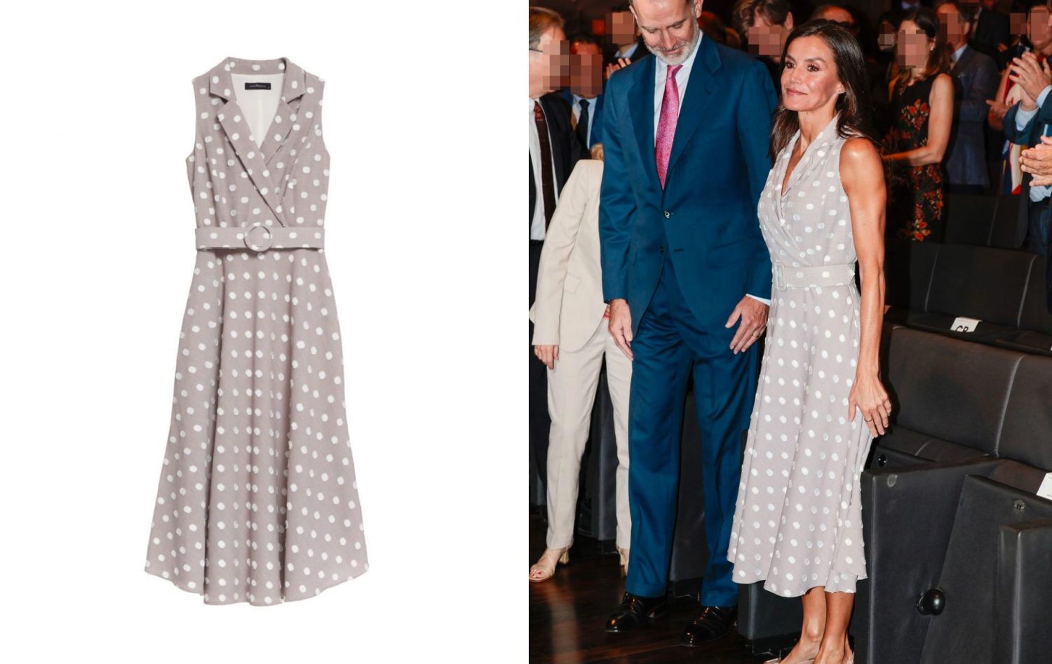 La Reina Letizia ha demostrado una vez más su habilidad para combatir las altas temperaturas de España con estilo. En esta ocasión, para el acto de entrega de Becas de posgrado en el extranjero de La Caixa en Madrid, optó por un vestido de su fondo de armario que ya había lucido anteriormente. El diseño, de la diseñadora Laura Bernal, es un elegante vestido de color topo con lunares bordados en blanco.