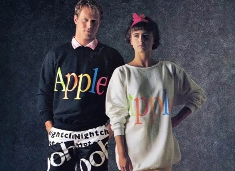 Es una realidad que la década de los 80 fue una época llena de color, y un claro ejemplo se puede ver en la ropa y en el propio logo de Apple, que por aquel entonces vendía diferentes prendas en todas las tallas, con precios que se situaban entre los 45 y los 70 dólares.