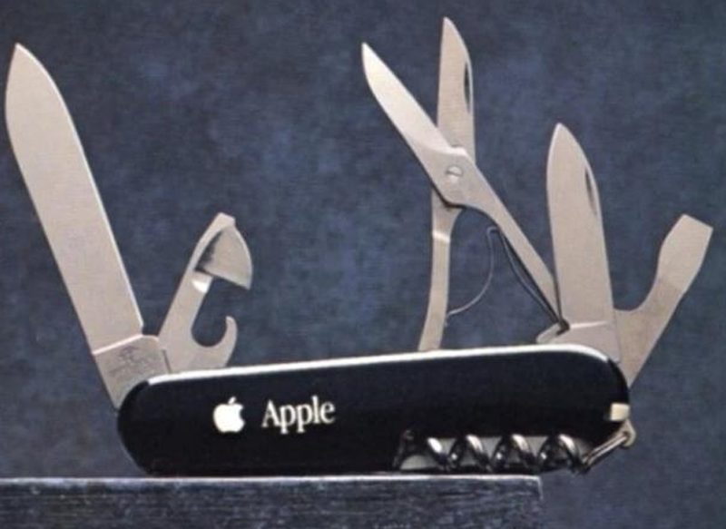 Seguro que nunca te lo hubieses imaginado, pero Apple también llegó a crear su propia navaja suiza, la cual tuvo un precio de venta en su momento de 34 dólares, siendo un artículo que a día de hoy sorprendería (y mucho) ver en los establecimientos siendo vendido por esta compañía, que como has podido ver, tuvo creaciones de lo más curiosas antes de centrarse exclusivamente en el terreno tecnológico.