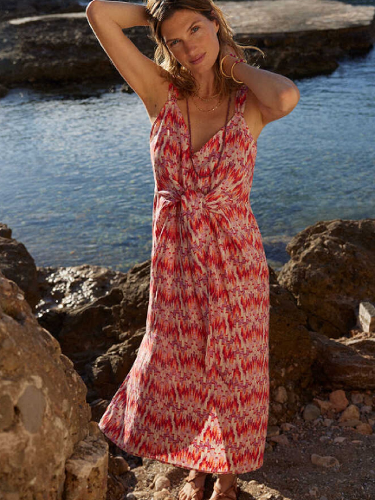 No puede haber un vestido más apropiado para pasar el verano que este. Otorga plena libertad de movimiento y un diseño precioso. Incluso si lo utilizas para ir a la oficina nunca quedarás desarreglada, sino todo lo contrario. Aun teniendo estampado podría ser una prenda estupenda para incluir en nuestro fondo de armario. ¿Te han llamado y tienes que salir corriendo? ¡Esta es tu opción perfecta! Vale 79 euros.