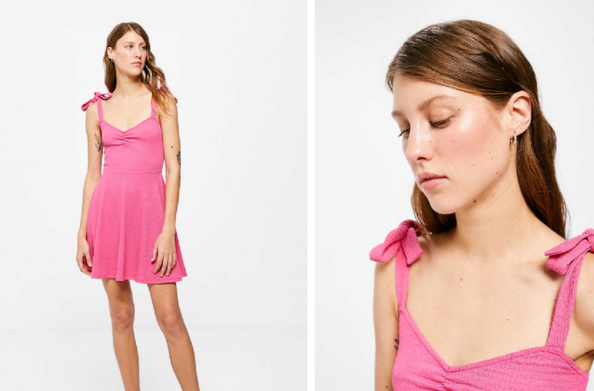 Si de lo que tienes ganas es continuar con la tendencia “Barbiecore”, aquí tienes otro diseño fucsia “Barbie” total. Es comodísimo y tiene varios puntos interesantes en su diseño a tener en cuenta. Por ejemplo, el ceño fruncido en el escote es un plus total. Se ajusta al cuerpo, tiene un corte en la cintura y falda redonda. Reúne todos los requisitos para ser el vestido de la popular muñeca. Además, no queda mal en ningún momento del día y es fácilmente combinable con sandalias, zapatillas o tacones. Cortefiel vende esta joyita por 12,99 euros.