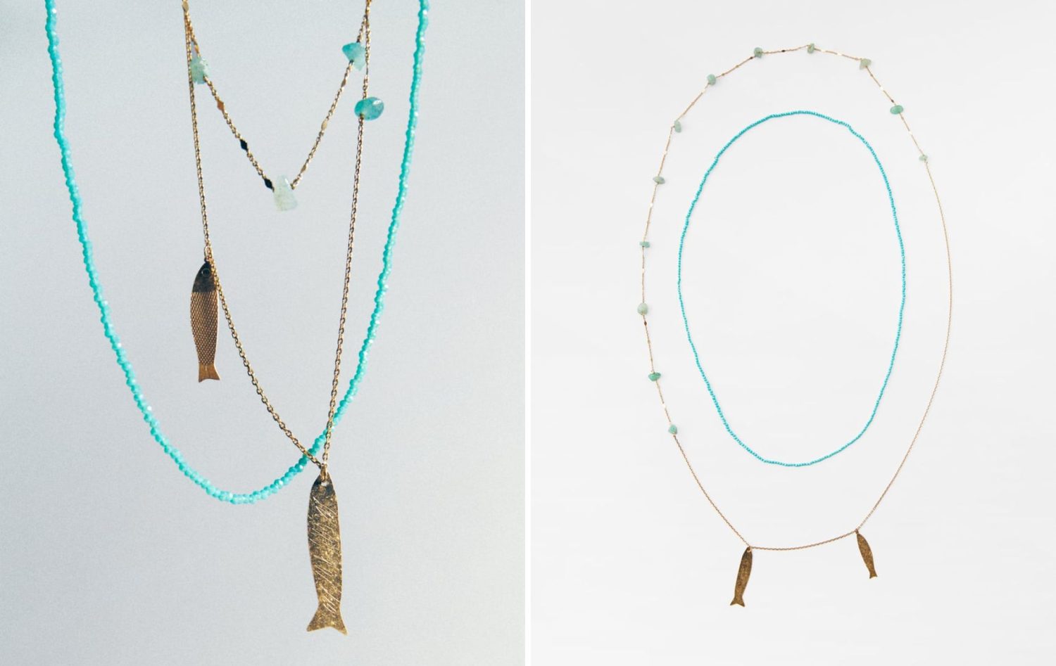 ¡Descubre la belleza y el encanto de este elegante pack de dos collares largos! Estos collares están diseñados para realzar tu estilo y aportar un toque de frescura a tus looks veraniegos. El primer collar cuenta con abalorios de un hermoso color turquesa que evocan la serenidad del mar y la brisa tropical. Estos abalorios añaden un toque de color vibrante y alegría a tu atuendo, perfecto para resaltar tus conjuntos más veraniegos. El segundo collar presenta una cadena fina con adorables colgantes en forma de pez, que simbolizan la libertad y la vida marina. Además, las piedras a color aportan un toque de brillo y elegancia sutil a este collar, creando una combinación perfecta de dulzura y sofisticación.