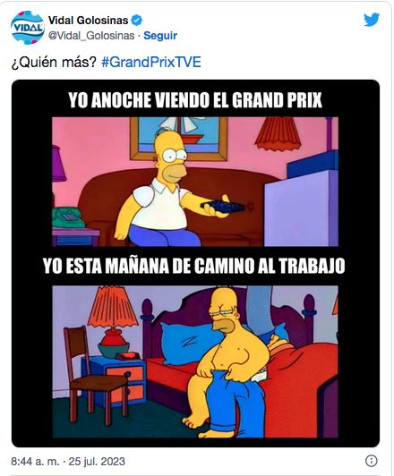 Una de las diferencias entre ver el Grand Prix del Verano cuando éramos niños y ahora es la responsabilidad de tener que ir a trabajar al día siguiente. Cuando éramos pequeños, las vacaciones de verano nos permitían disfrutar sin preocuparnos demasiado por la hora. De nuevo Homer lo representa muy bien.
