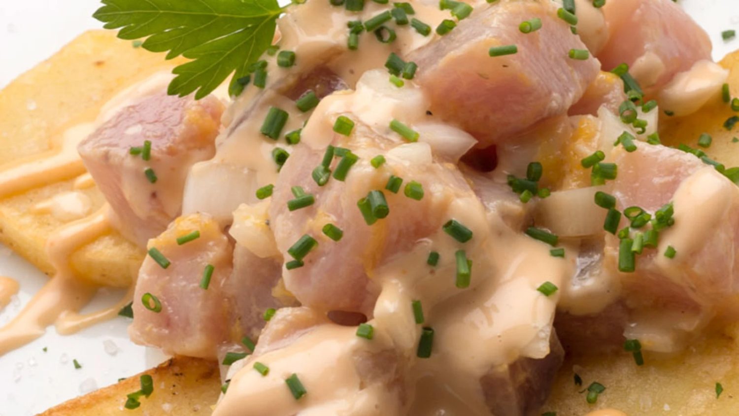 Después del gazpacho de tomate y cerezas, seguimos nuestro menú con ceviche de bonito con salsa rosa, otro plato fresquito. El pescado en verano sienta fenomenal. Eso sí, no te olvides de congelarlo antes de marinar. También puedes sustituirlo por salmón. La salsa es un clásico de toda la vida que ahora va a adquirir más notoriedad que nunca por motivo de la película. Podrás teñir de rosa tu vida.