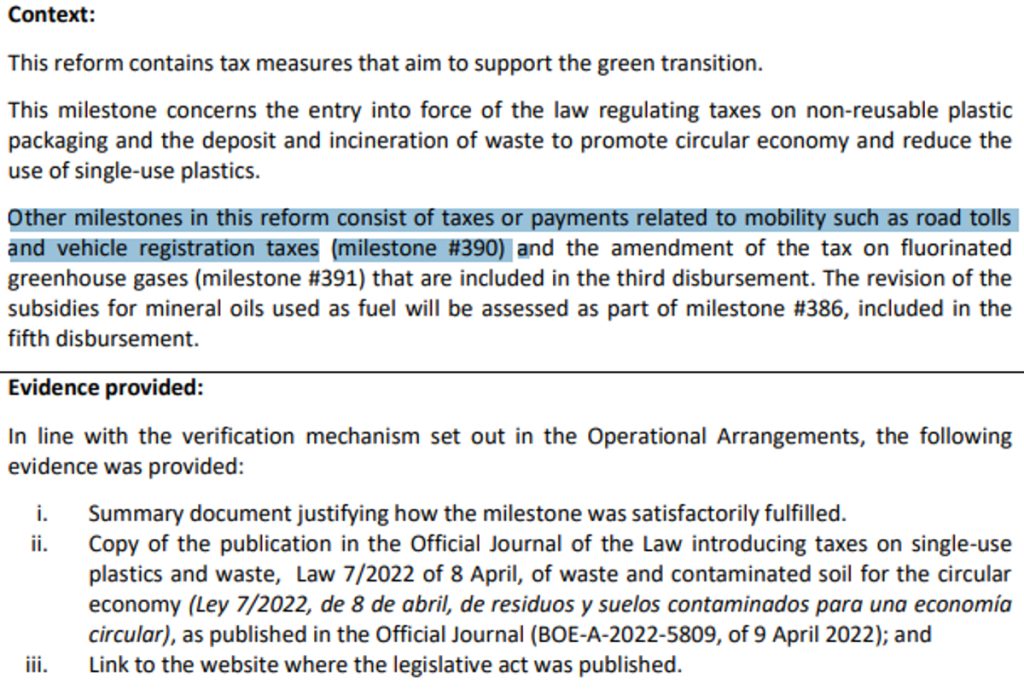 Para el quinto pago de los fondos europeos, un paquete que supera los 8.000 millones, el Gobierno tuvo que enviar las reformas realizadas el pasado 30 de junio. Para el desbloqueo de estos fondos, Bruselas exigió la creación de más impuestos verdes -la nueva panacea de los Estados para engordar las arcas públicas y hacer frente a las emisiones récord de deuda-, los peajes en las carreteras y nuevas subidas de impuestos, pero el Gobierno trató de ocultarlos.
