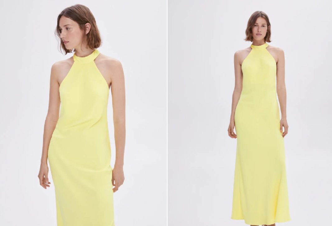 Después del largo midi, otra de las tendencias que se ha impuesto con fuerza esta temporada ha sido el cuello halter. Han llegado modelos hasta de bañaderas con este cuello. La razón está a la vista: es súper elegante. Este diseño de vestido largo es la pieza que no debería faltar en tu armario nunca. Reúne lo que una prenda de verano debe tener: es cómodo, bonito, elegante y tiene un color vibrante. ¡Nos encanta! Su precio es 69,99 euros.