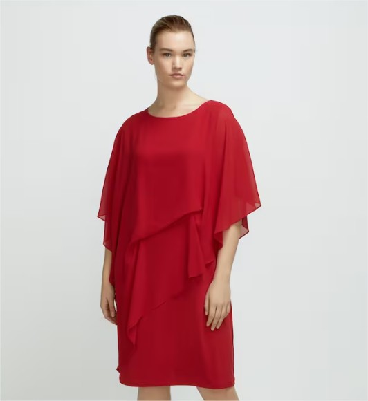 El rojo, color de la pasión y del atrevimiento. Este vestido drapeado de capas es una auténtica declaración de intenciones. Su diseño, que juega con diferentes niveles y volúmenes, da movimiento y vida a cada paso que das.