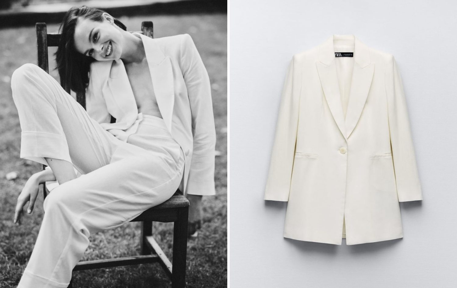 1Un toque de elegancia y frescura: La blazer larga entallada con lino de Zara