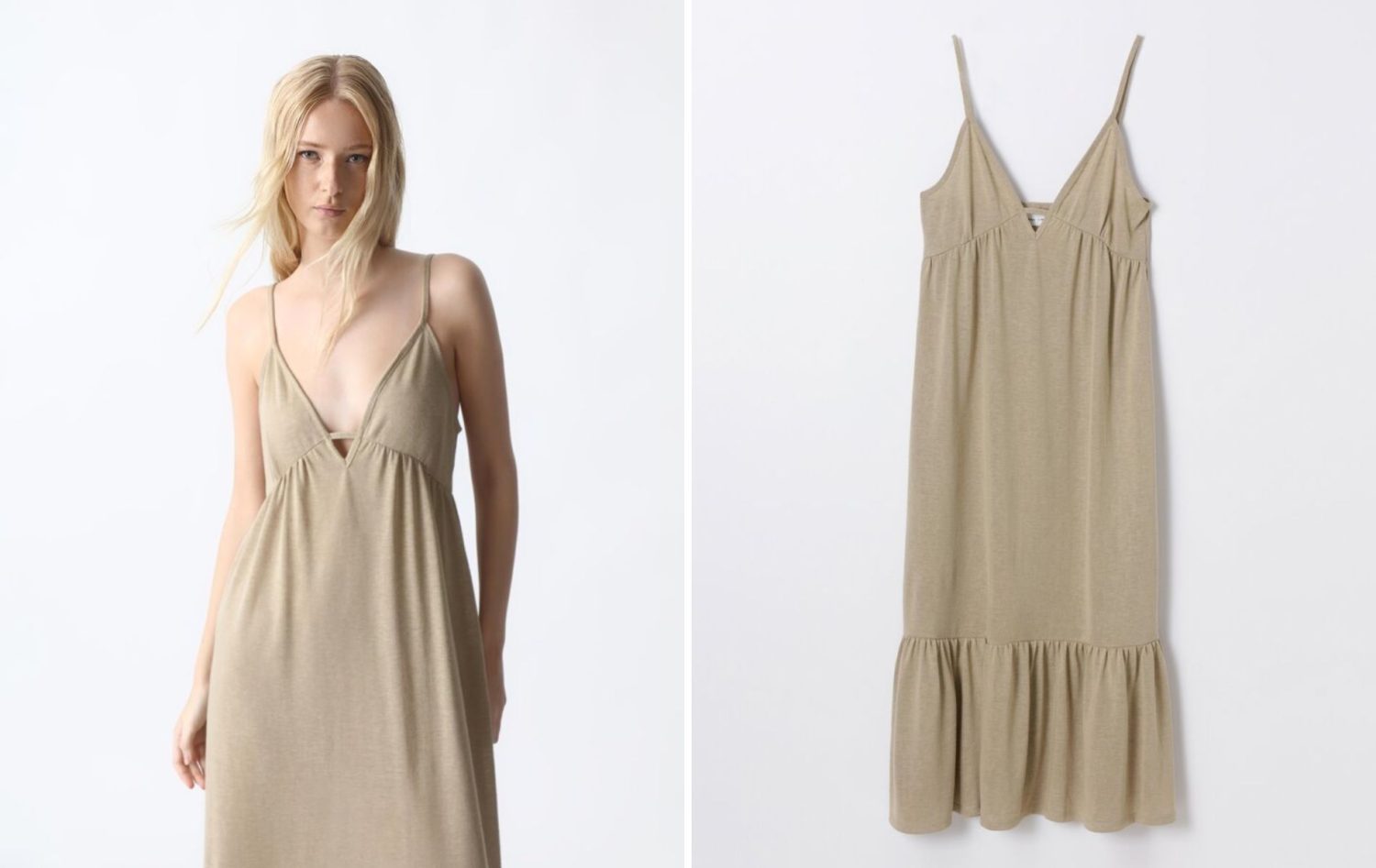 1Elegante frescura a precios irresistibles: el vestido midi de tirantes finos con volante