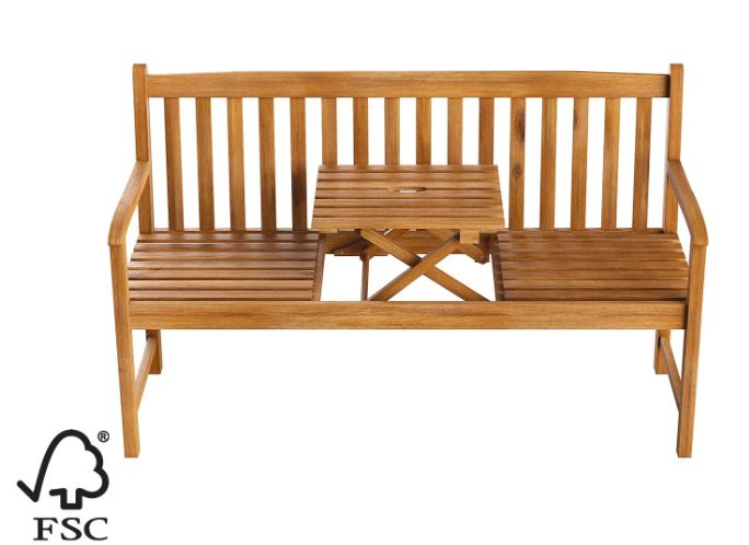 Otro banco de jardín que destaca en la sección especial de Lidl es este. También doble, una de las cosas por las que más llama la atención es por llevar incluida una mesa plegable, muy cómoda y fácil de utilizar. Podrás usarla como reposabrazos o como una cómoda opción para servir cenas, bebidas o cualquier tentempié. Disponible en color madera natural, lo puedes conseguir por 119,99 euros. Es uno de sus productos estrella.