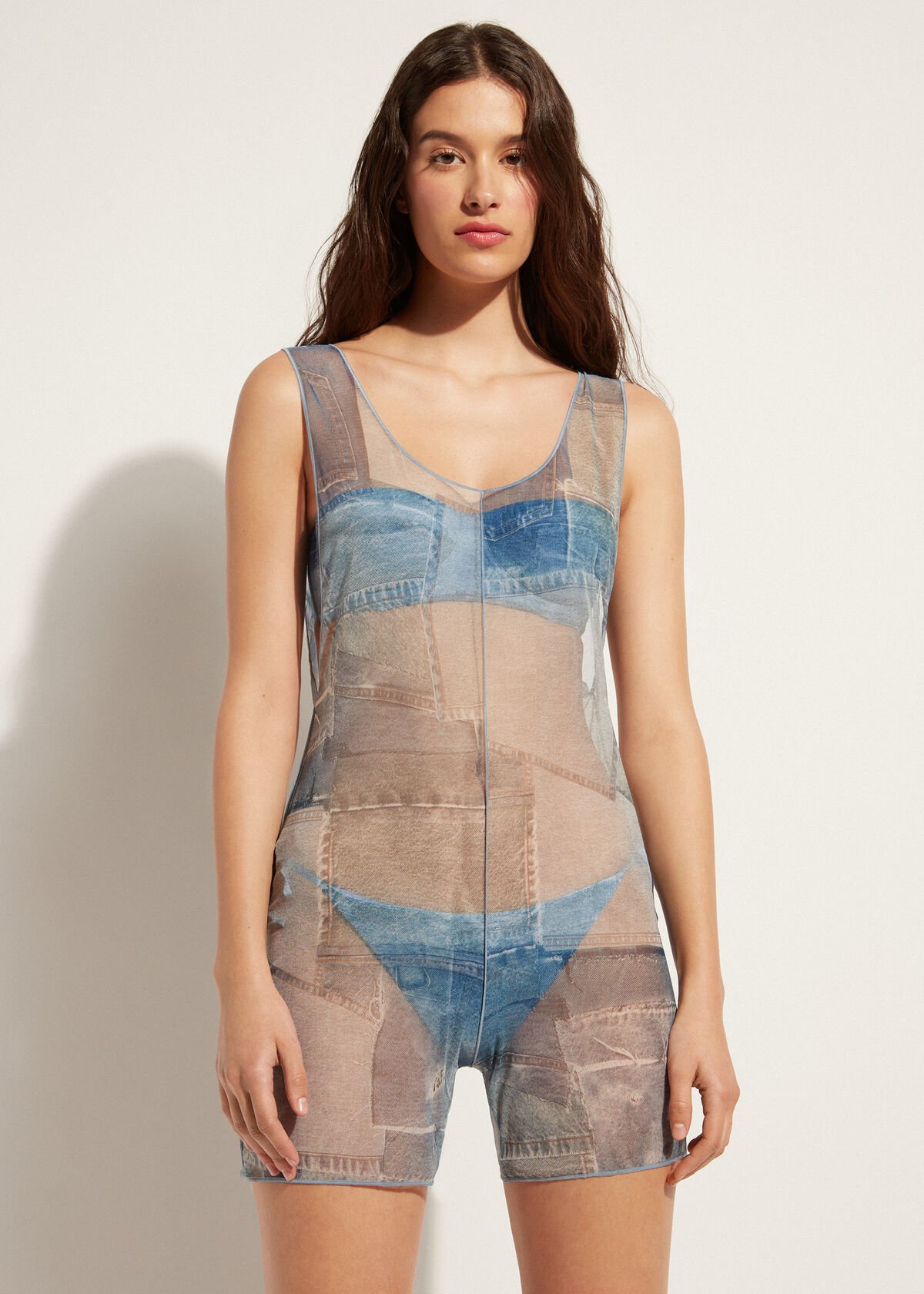 No todo son bikinis dentro de la moda de baño de Calzedonia. Si buscas un mono sencillo y suelto para ponerte encima de tu ropa de baño en la playa o la piscina, este llamará tu atención. Se trata de una prenda de diseño corto y estampado patchwork imitando al denim que ya se ha convertido en una de las más buscadas de la tienda gracias a su originalidad. En cuanto a su precio, ahora lo puedes conseguir por solo 14,95 euros cuando su precio anterior era de 29,90.