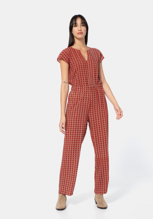 Si eres fan de los monos, este modelo de Carrefour te conquistará. Es de viscosa 100% muy suave, agradable al tacto y con una caída muy elegante. El corte es suelto, con manga corta, cuello tunecino y costura en la cintura para marcar la silueta. Es de color rojo y tiene un original estampado retro que le da un toque informal. El precio de esta prenda es de 17,99 euros y está disponible en tallas desde la XS hasta la XL.