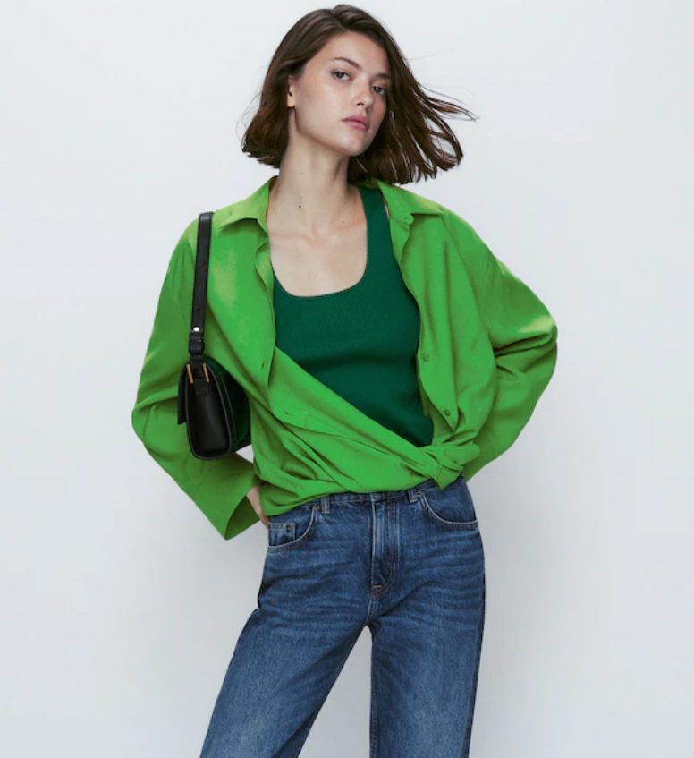 Dentro de la sección de rebajas de Massimo Dutti, otra de las camisas que más destaca es esta. Se trata de una pieza que llama la atención, sobre todo, gracias a su atractivo color verde, ideal para convertirse en la prenda central de cualquiera de tus looks. Además, cuenta con un detalle de nudo muy juvenil y rejuvenecedor, perfecta para crear un outfit de capas. En cuanto a su precio, costaba 49,95 euros y ahora la tienes disponible por 19,95.
