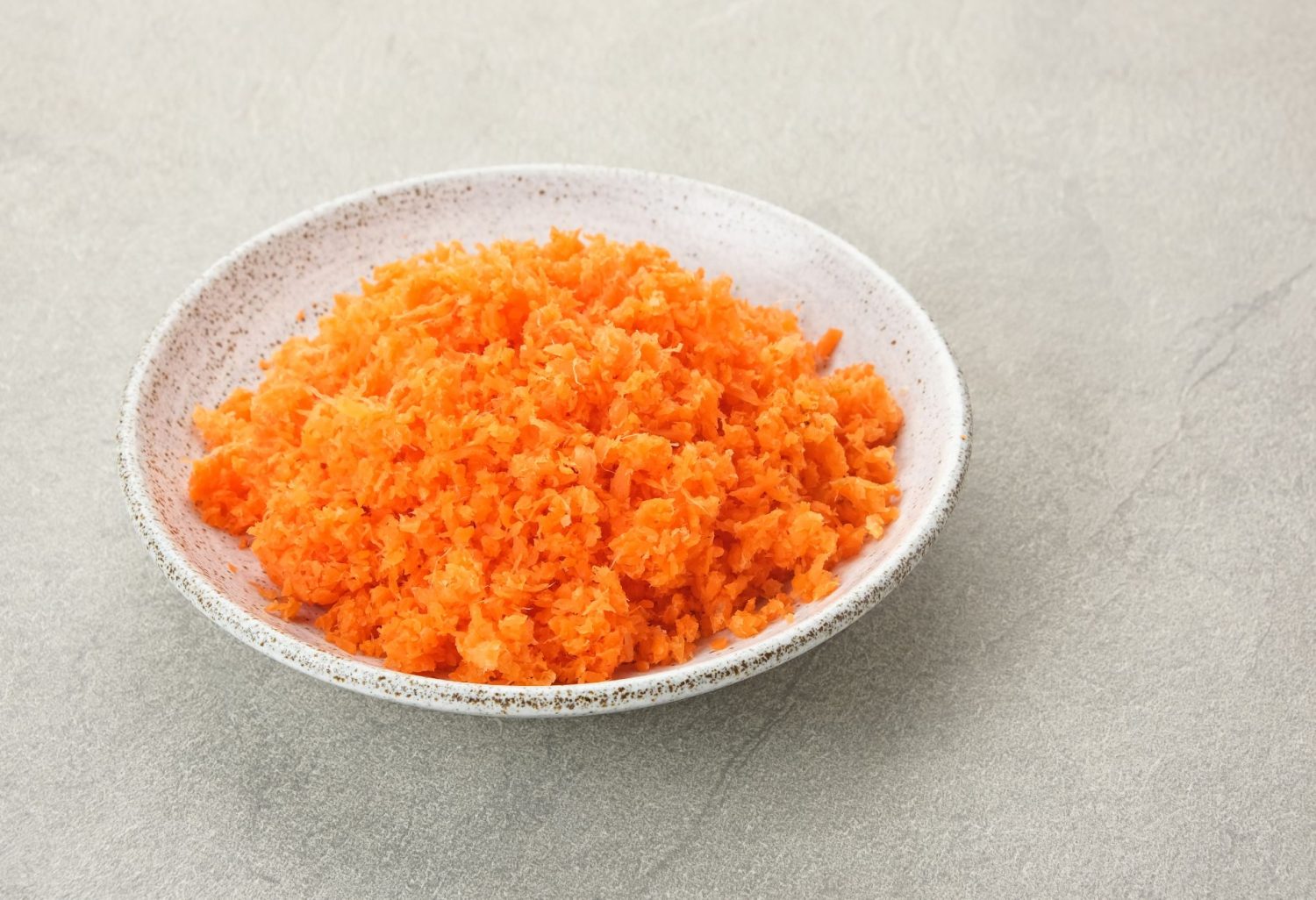 Licúa una zanahoria rallada con medio yogur natural hasta obtener una mezcla homogénea.