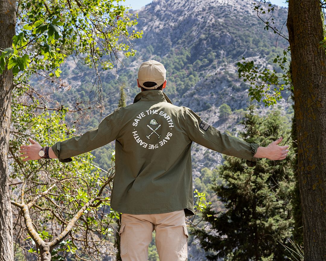 Harper & Neyer siempre ha sido una marca que no sigue la corriente del fast fashion, y aboga que la calidad es mejor que la cantidad. Por ello, han utilizado esta chaqueta, la cual tiene en su espalda el mensaje: «Save the earth», para hacer a su público reflexionar sobre que una forma de ayudar verdaderamente al planeta es no comprar esta prenda.