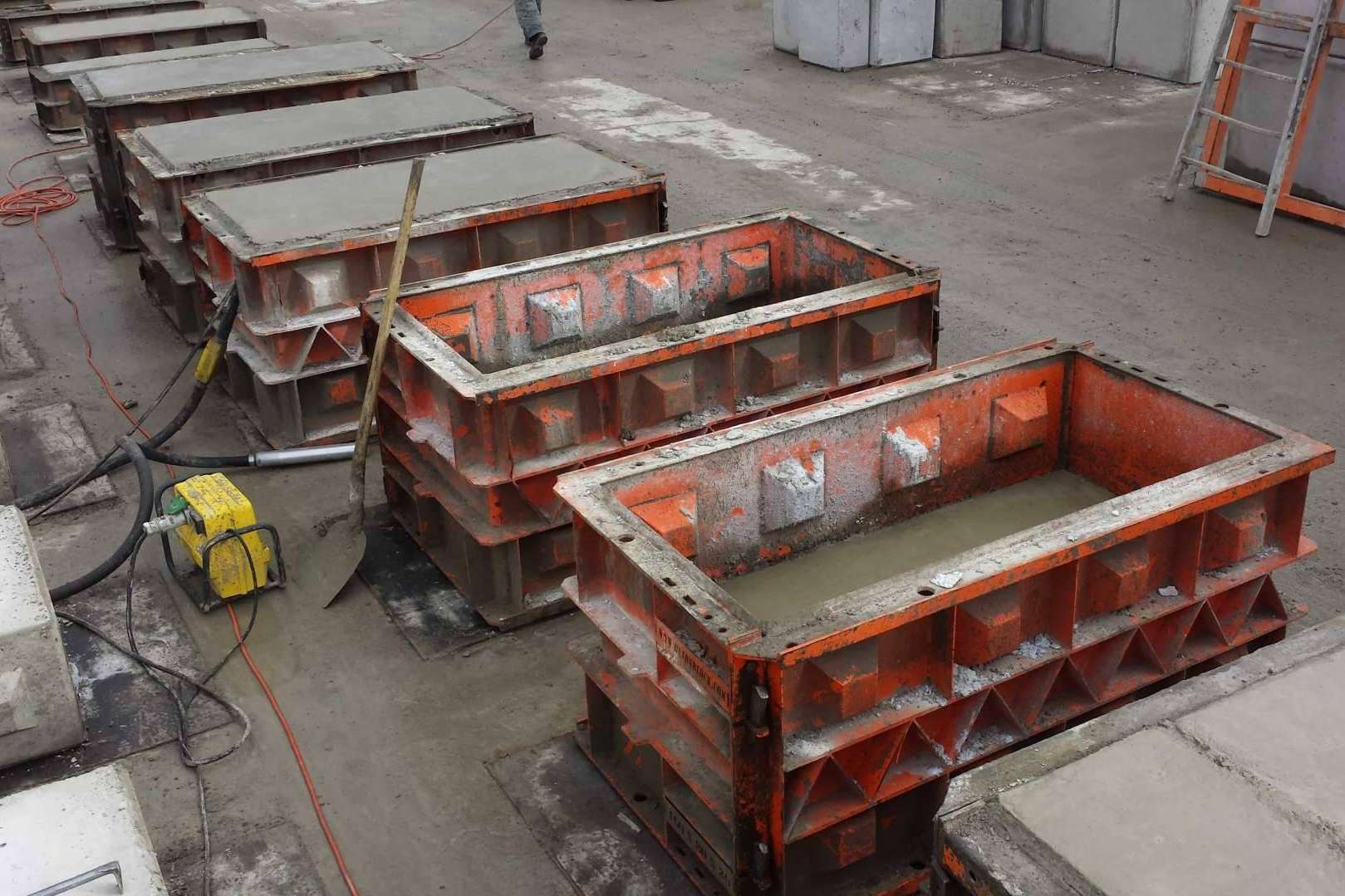 Decenas de moldes de bloques de hormigón