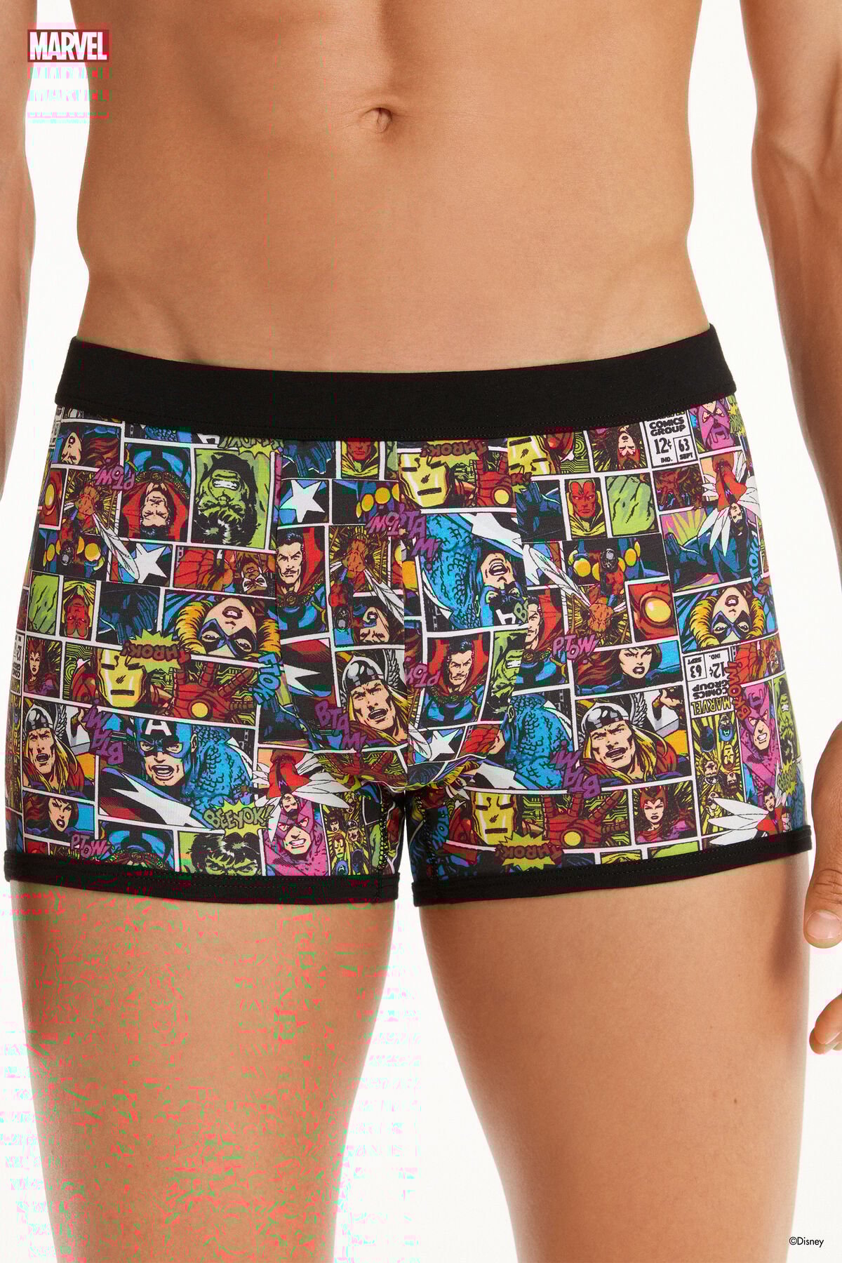 Las prendas de interior, como no podía ser de otro modo, son también protagonistas en esta colección de Tezenis con Marvel. En este caso, una de las que más destacan entre todas las novedades son estos bóxer de hombre. Con base en color negro, llaman la atención gracias a su completo estampado de Marvel, donde se pueden reconocer muchos de los personajes favoritos de sus fans. Con un precio de solo 9,99 euros, no te podrás resistir.