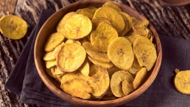 Si eliges hacer los chips fritos, calienta el aceite sin dejar que llegue a humear y espera a que las rodajas se doren de forma uniforme antes de retirarlas y colocarlas sobre papel absorbente. La opción de usar una freidora de aire caliente también es buena, ya que podemos conseguir un resultado crujiente y nada aceitoso.
