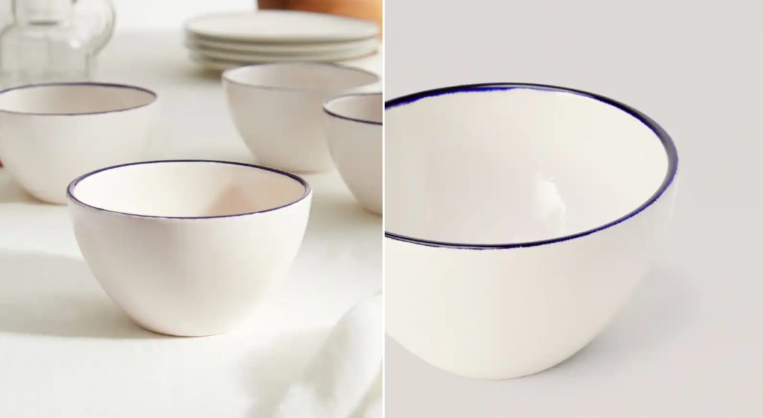En la cocina también son varios los elementos que puedes estrenar para darle a tu casa ese toque hogareño que siempre buscamos cuando llega el otoño. En este caso, uno de los productos que más destaca es este bol de color blanco con borde azul, de estilo muy clásico, pero efectivo, que se convertirá en un imprescindible del día a día. Con un precio de tan solo 6,99 euros, también querrás echarle un vistazo al resto del juego.