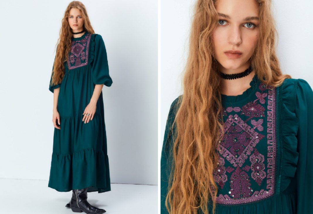 Sfera nos muestra en este vestido otra tendencia que llevamos viendo implementada desde que comenzó el año: la modalidad oversize. En la actualidad ya no se lleva eso de que “para presumir hay que sufrir”. El confort va antes que nada y este vestido largo bordado en la prueba. Tiene un cuello caja y un detalle bordado pechera que fascina. Con plena libertad de movimiento pisarás fuerte allá por donde vayas. Su precio es 35,99 euros. ¡Qué maravilla!